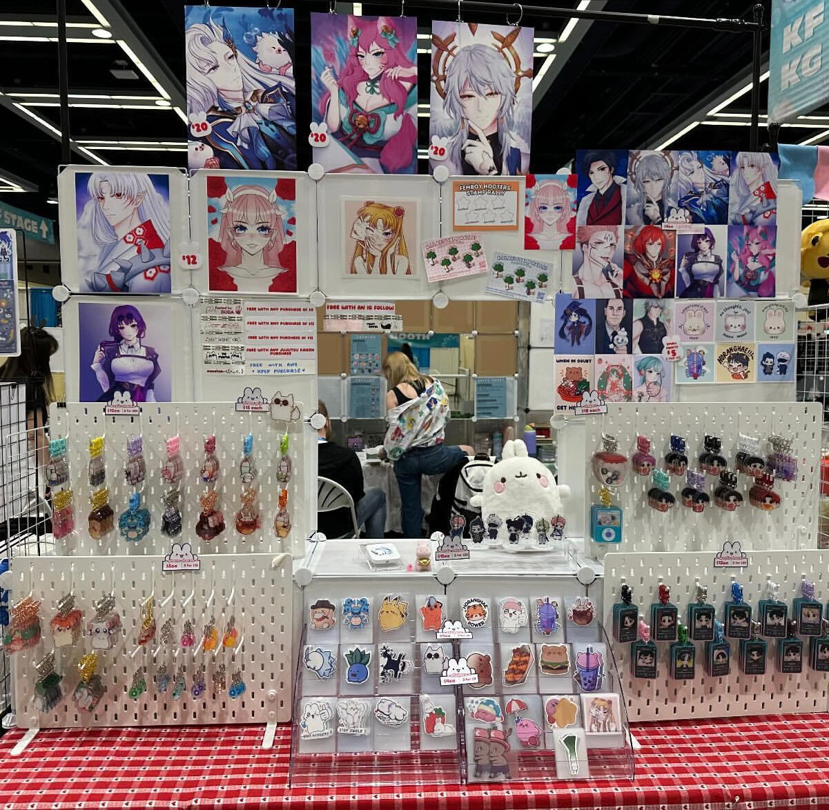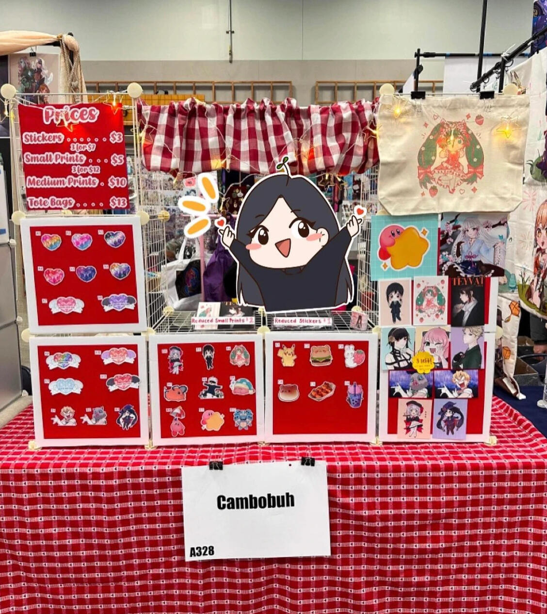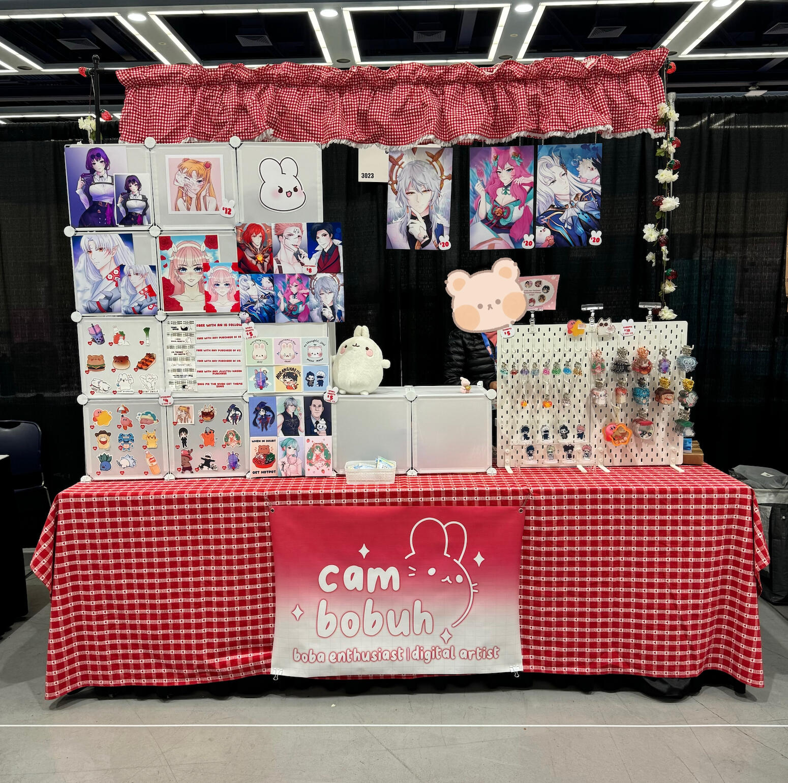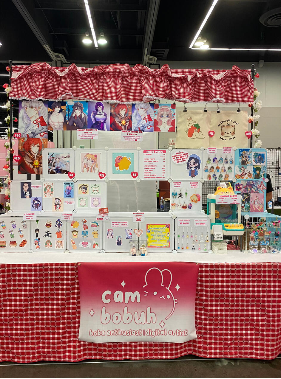 You'll see the artist at their booth along with their partner running into shenanigansTheir ultimate dream is to open a boba shop called Camboba with a hang-out/study space where everyone have a safe space to enjoy drinks and hangout.Cammie's favorite activity at conventions is to participate or curate stamp ralliesIf you see Cammie in person, don't be afraid to say hello! She loves to talk about similar interest. Although their social battery runs down easily, she'll find a little bit of energy to talk. Especially about their favorite fandoms or anything k-pop related